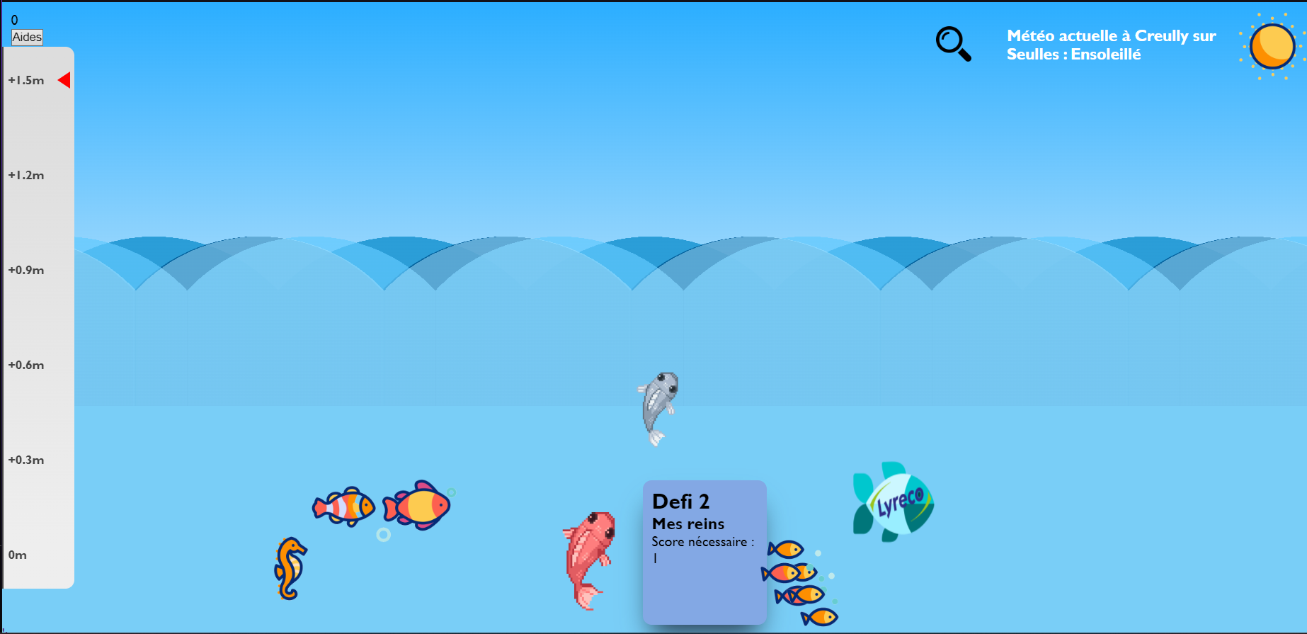 Pour cela, nous avions l'idée de faire un mini-jeu pour chaque partie du corps/de la mer, où le joueur pourrait résoudre un problème pour rétablir la santé de la mer. Quand un joueur réussit une épreuve, il débloque la suivante et ainsi de suite.