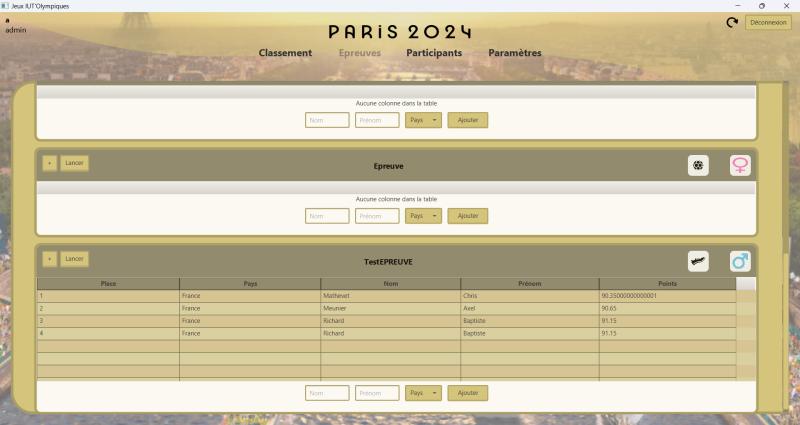 Un administrateur qui pourra entrer et modifier les différents barèmes, équipes et athlètes.