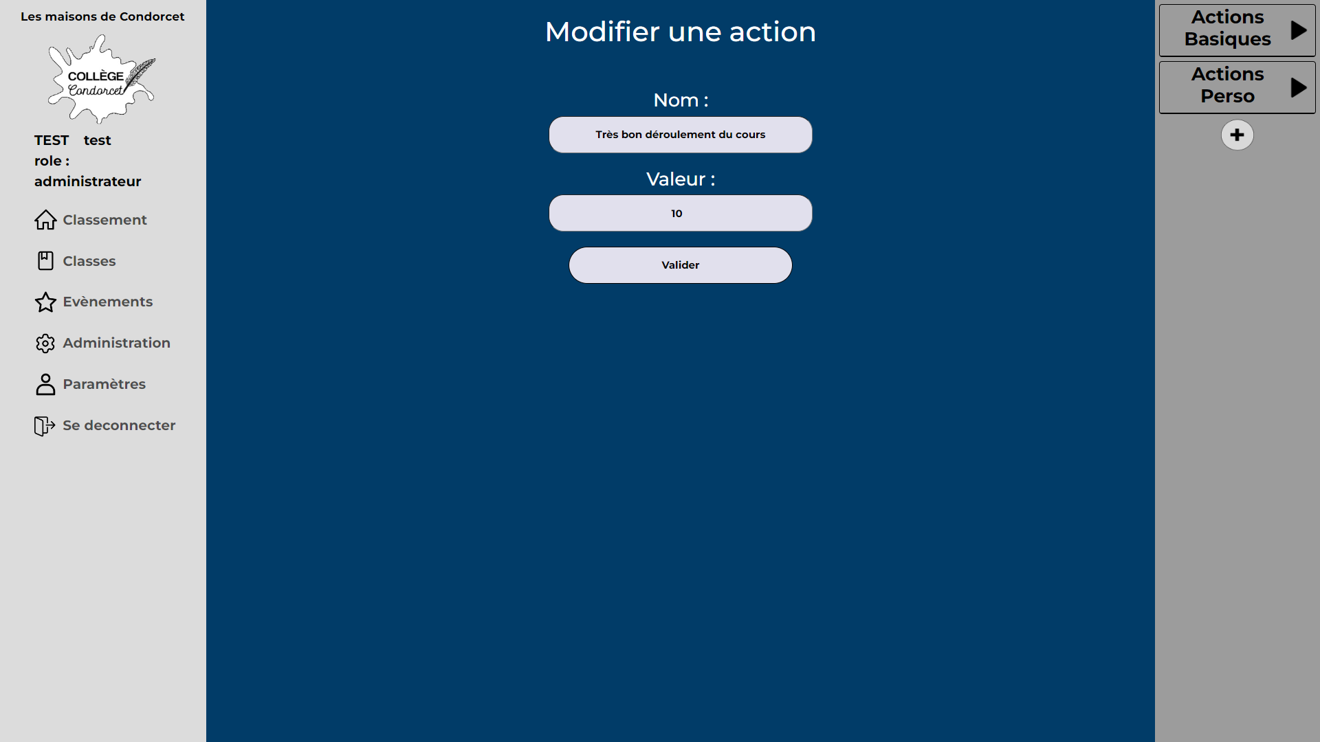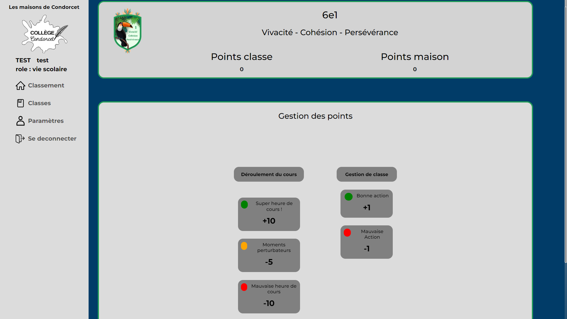 Celui du professeur qui pourra ajouter ou retirer des points aux classes en leur attribuant des actions.