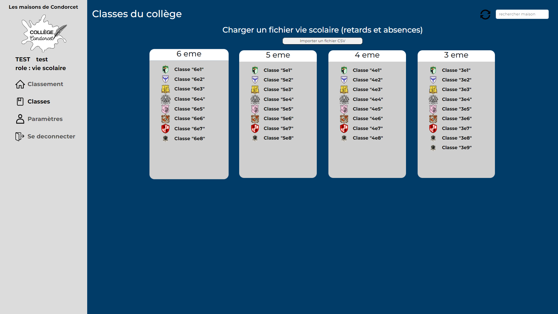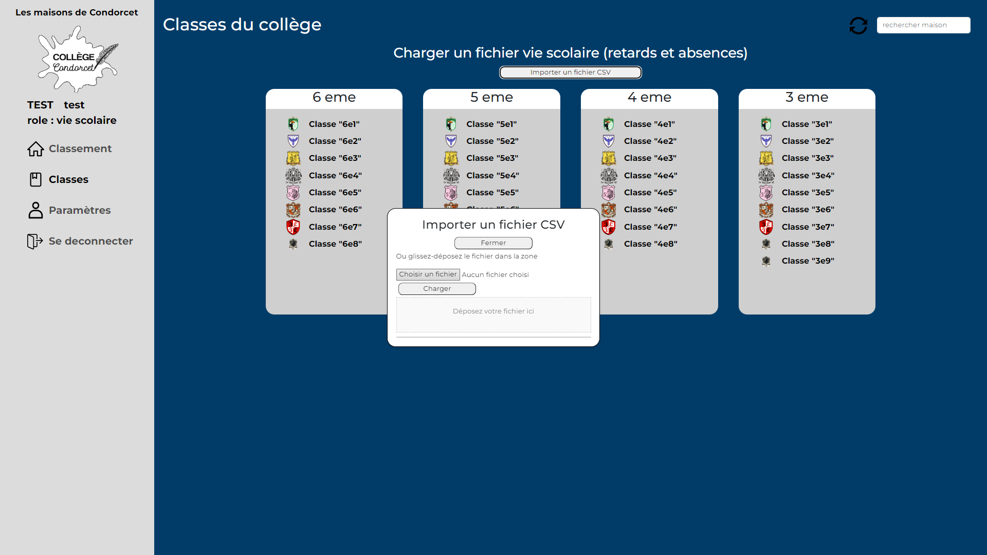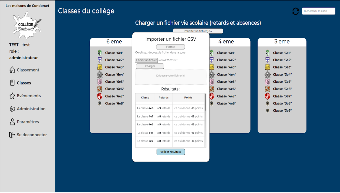 Celui de la vie scolaire, qui pourra importer des fichiers Pronote (Excel) avec le nombre de retard pour une semaine afin de retirer des points aux classes concernées.