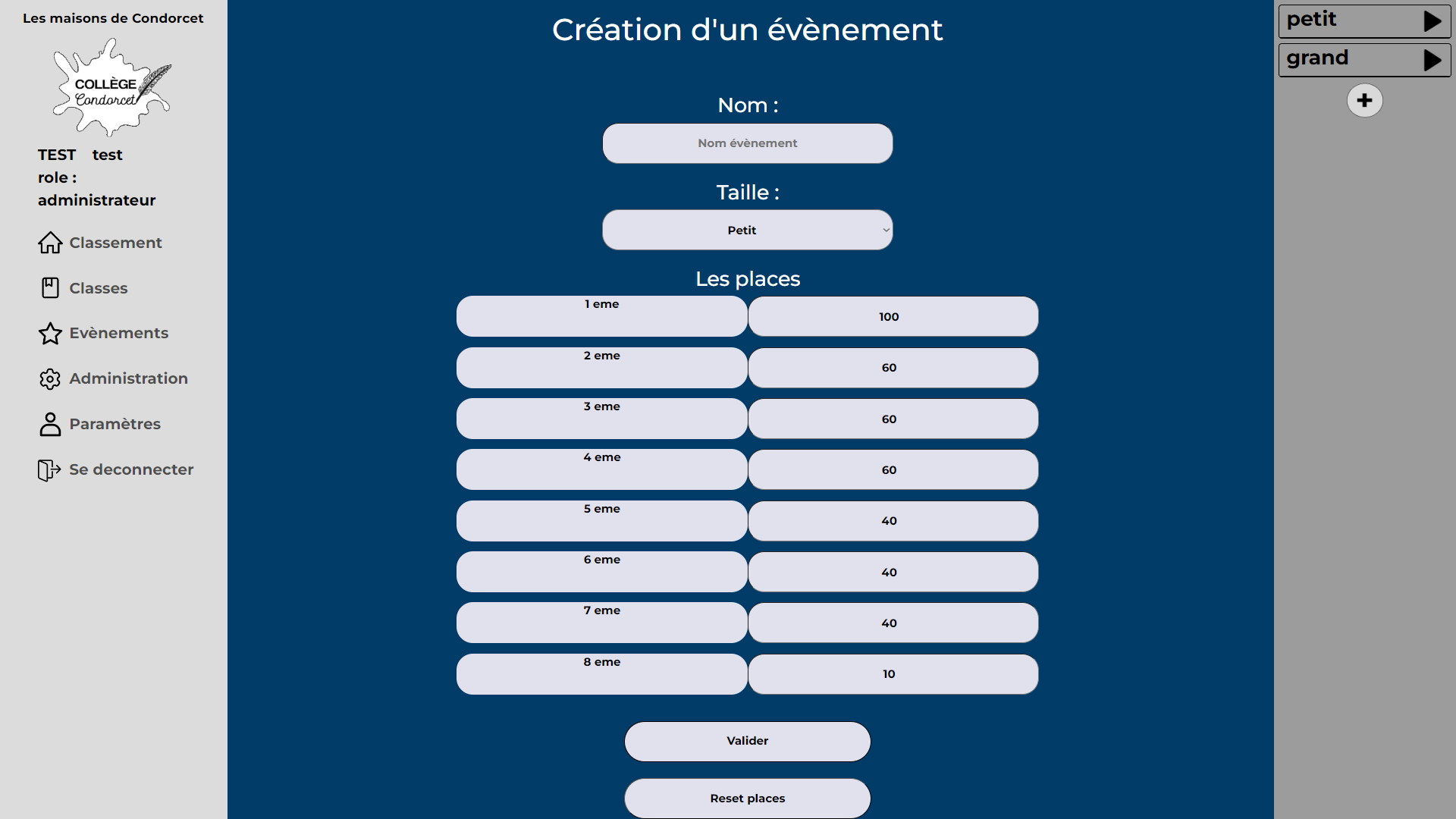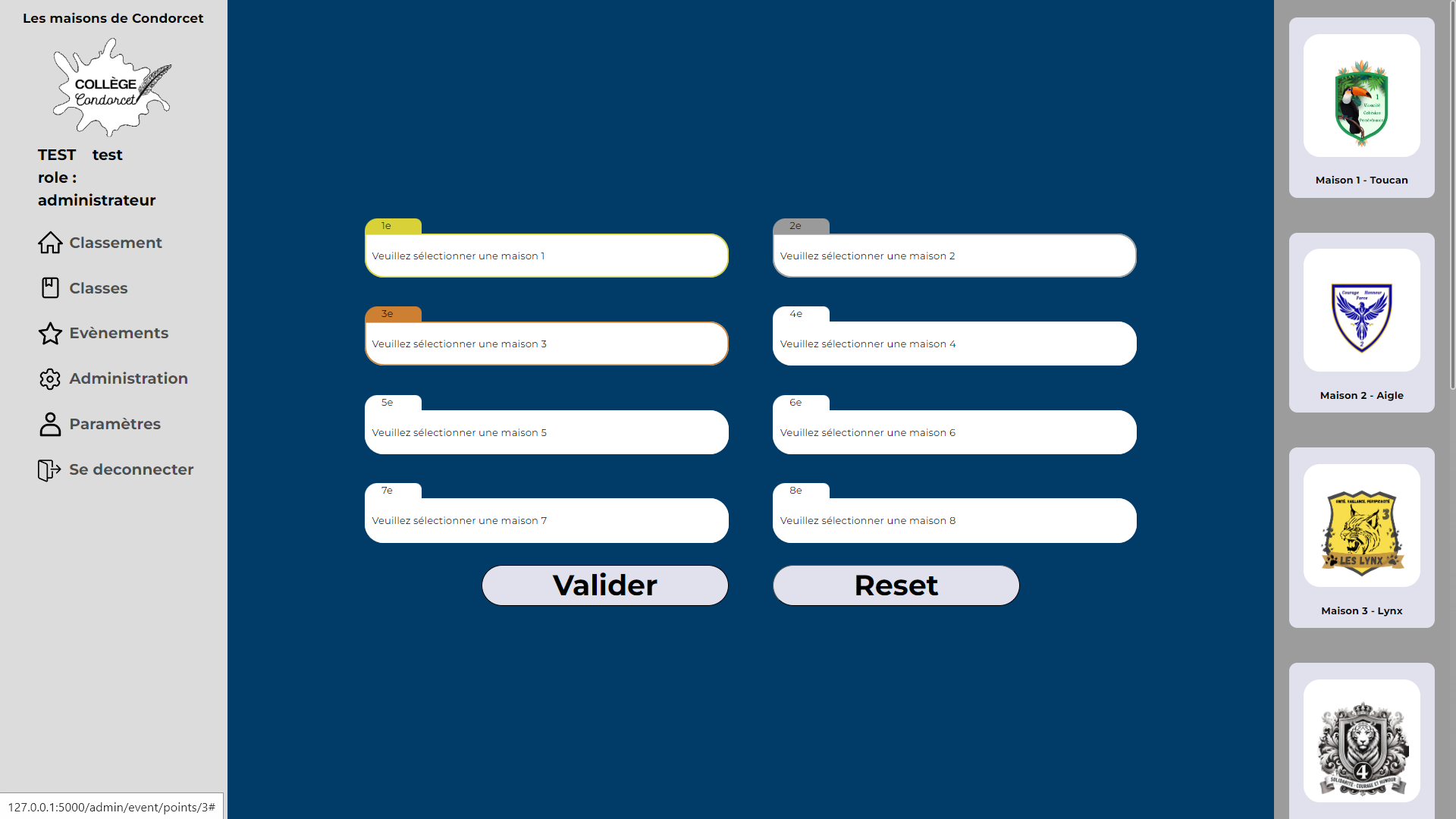 Il pourra également attribuer les places des maisons aux événements créés (Leur attribuera le nombre de points de la place en question).