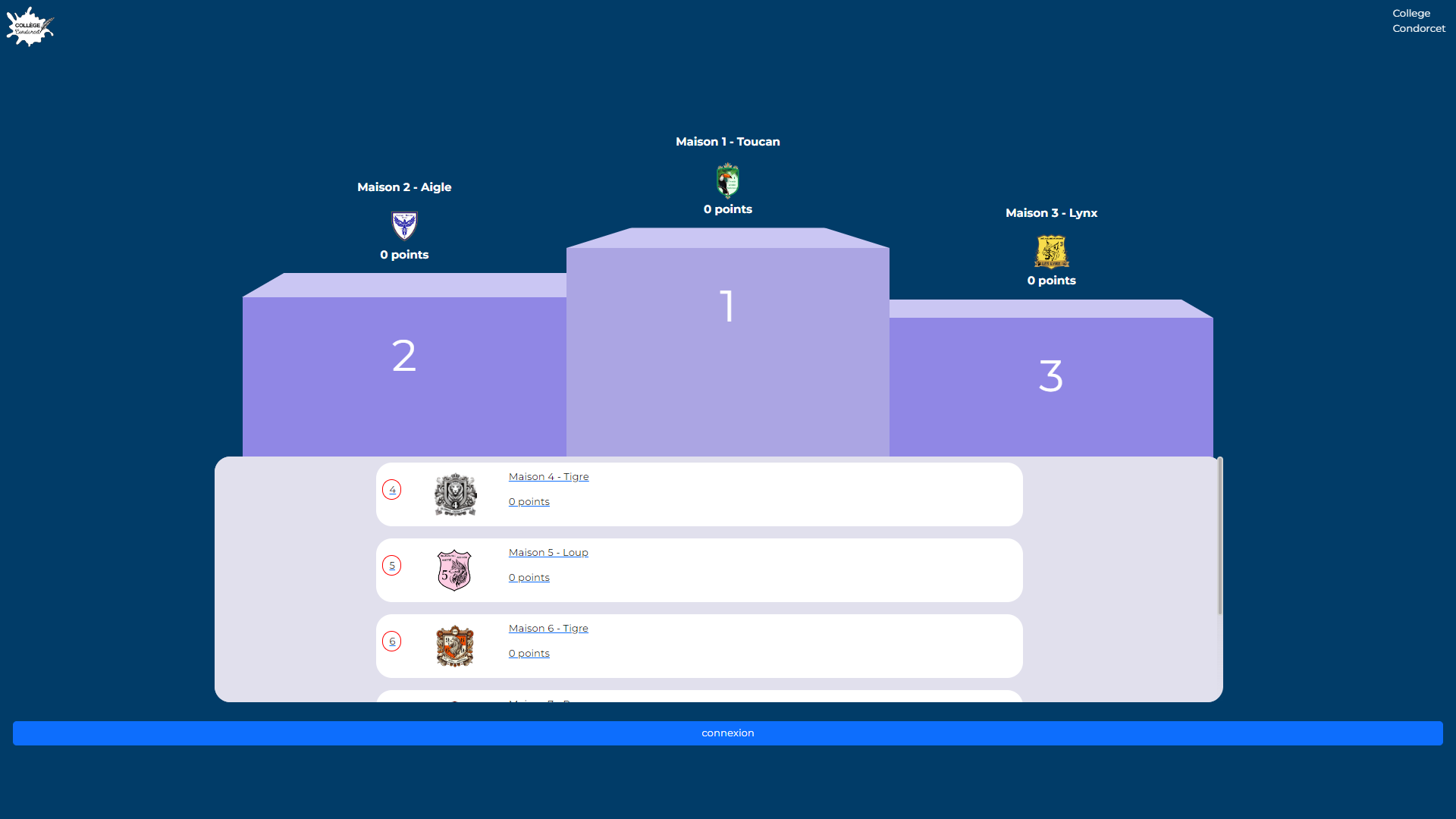Le collège Condorcet de Fleury-les-Aubrais aimerait une application mobile ou web. Cette application permettra la gestion de points entre des “maisons” (à la manière d'Harry Potter) afin d’encourager le comportement positif de leurs élèves.
